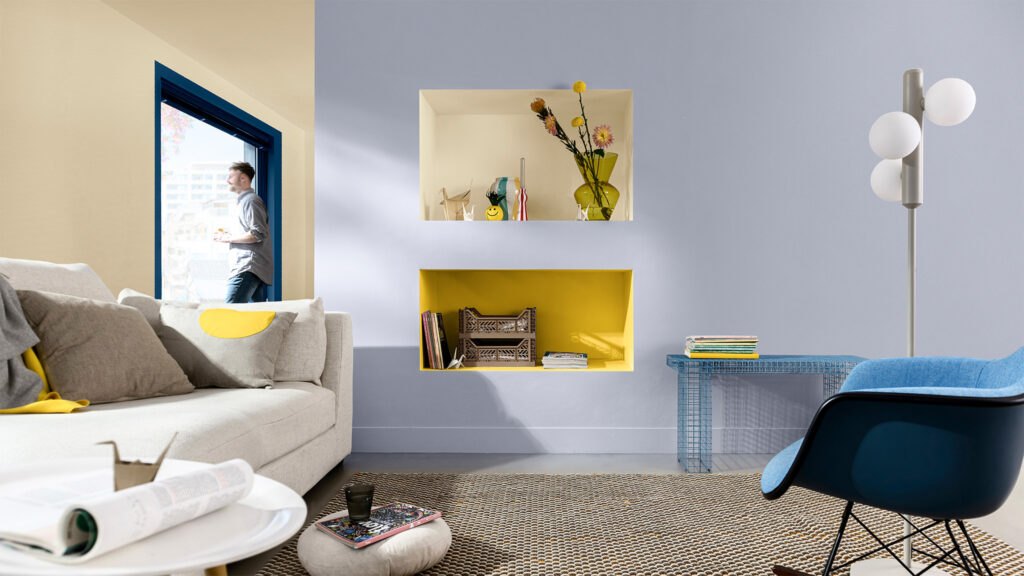 “The ‘Bold’ palette combines True Joy yellow with deep orange, blue and an array of neutrals. Cream and greige walls and furniture provide a subtle backdrop for the true stars of this story to shine. The colour pop of cushions in True Joy and similarly vibrant coral and azure put the dopamine into the décor to create a playful living room look. This style is all about curating a dynamic space that is filled with energy and positive vibes.